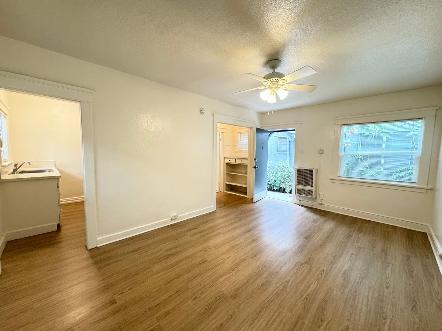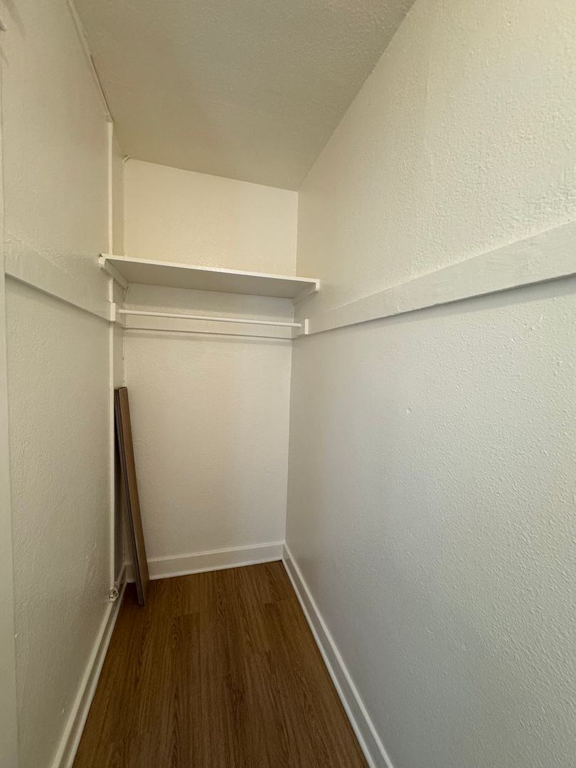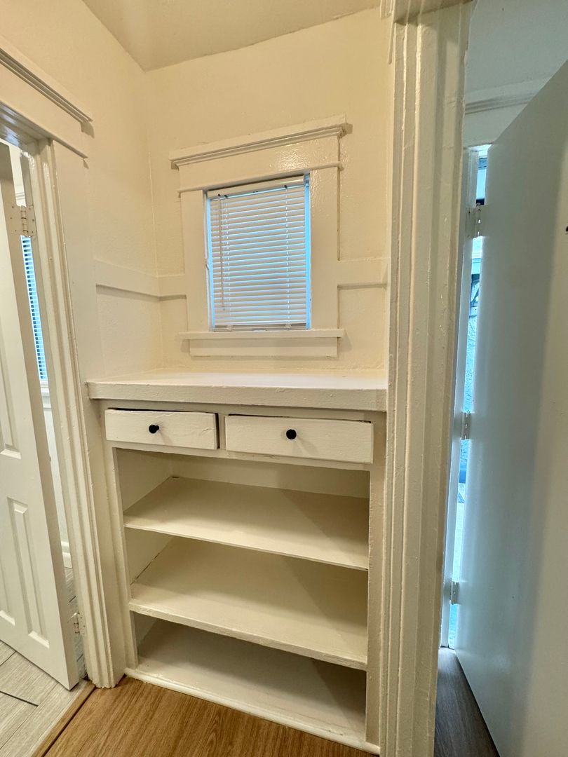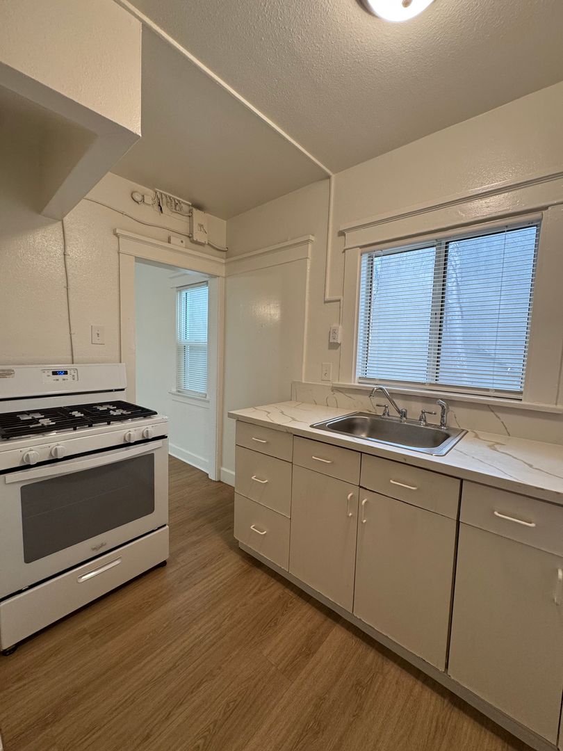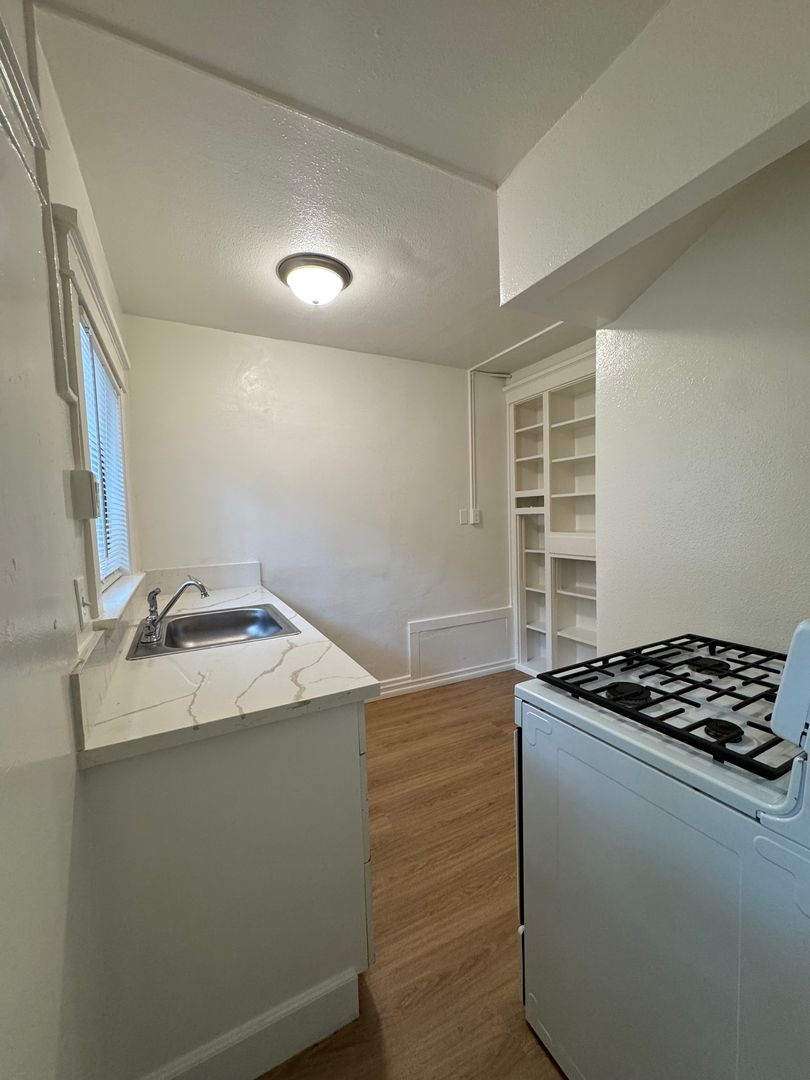This lovely studio features fresh paint and vinyl plank throughout. The living area has unique vintage built in cabinets and new blinds through out. Kitchen has many cabinets and comes with a stove. Closet area has lots of space. Bathroom features a full bathtub and fresh paint. All utilities are included! No pets or parking.