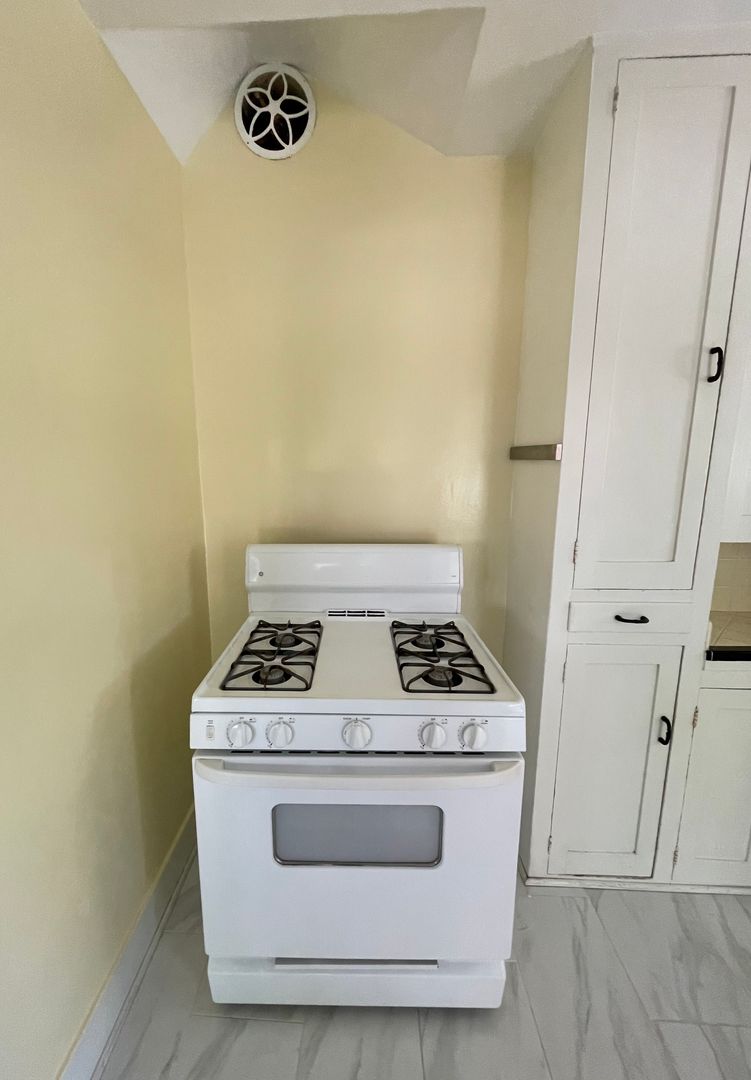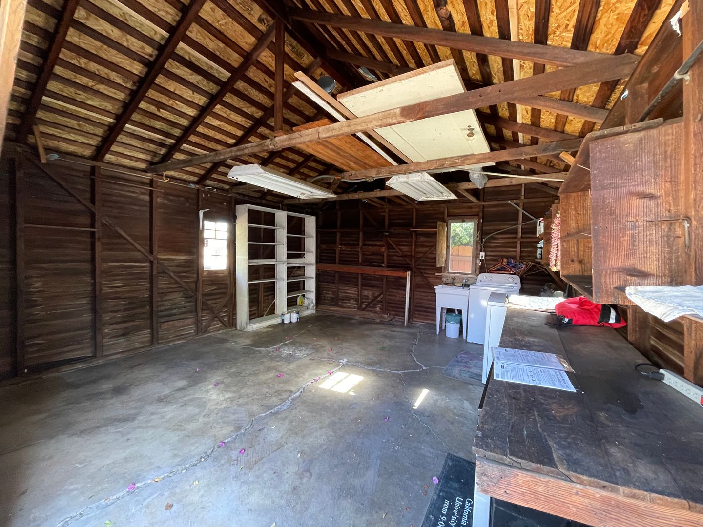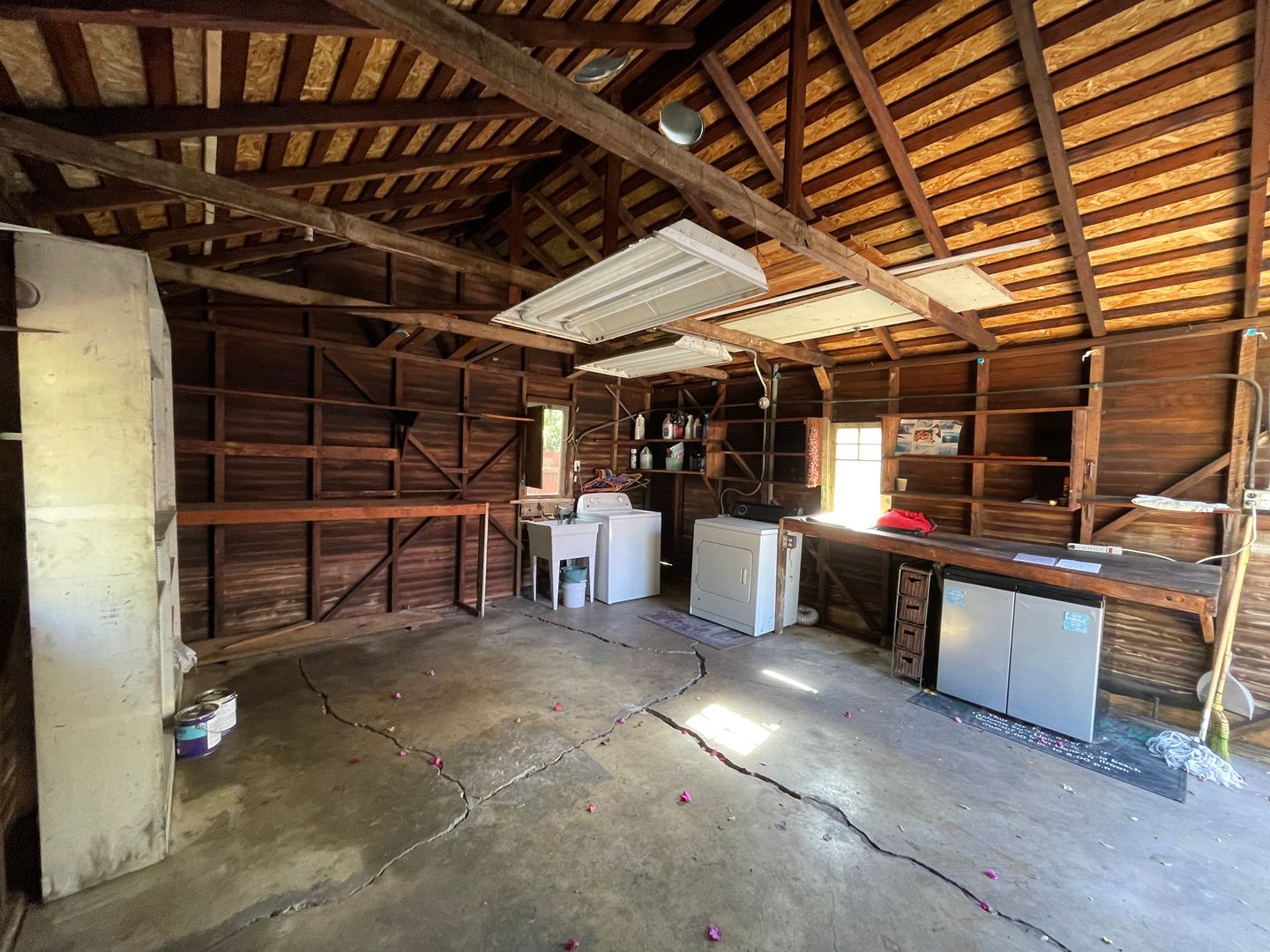 For your convenience, the laundry hookups are located within the double detached garage. As an added convenience, the home comes complete with a stove, vintage refrigerator, and washer/dryer hookups.