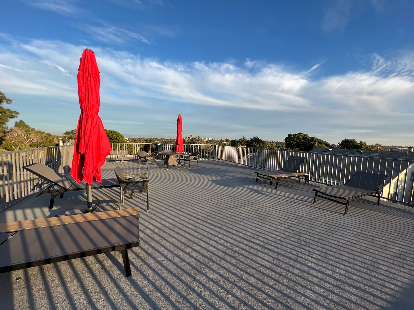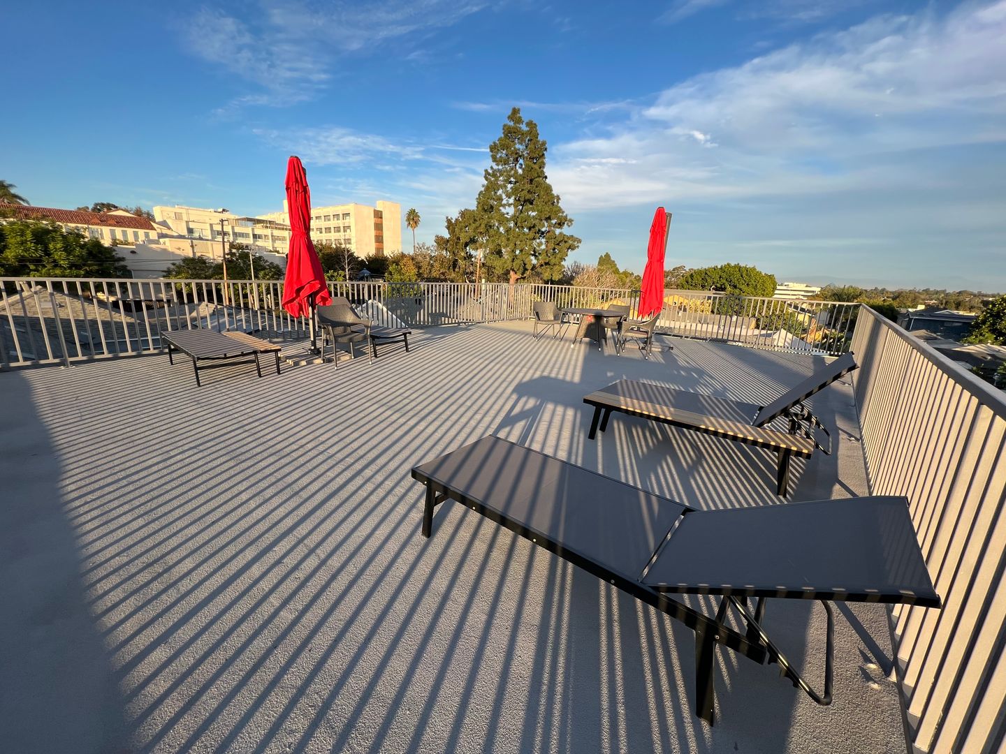 This studio offers the unique additional amenity of a beautiful rooftop deck that's shared with the other residents of the property to enjoy and take advantage of. It's one of the best ways to enjoy the coveted Southern California weather while you lay back on one of the multiple lounge chairs available, as well as umbrellas to relax under. The 360 degree views available from this deck are breathtaking!