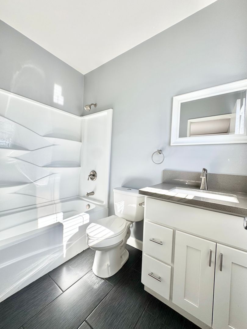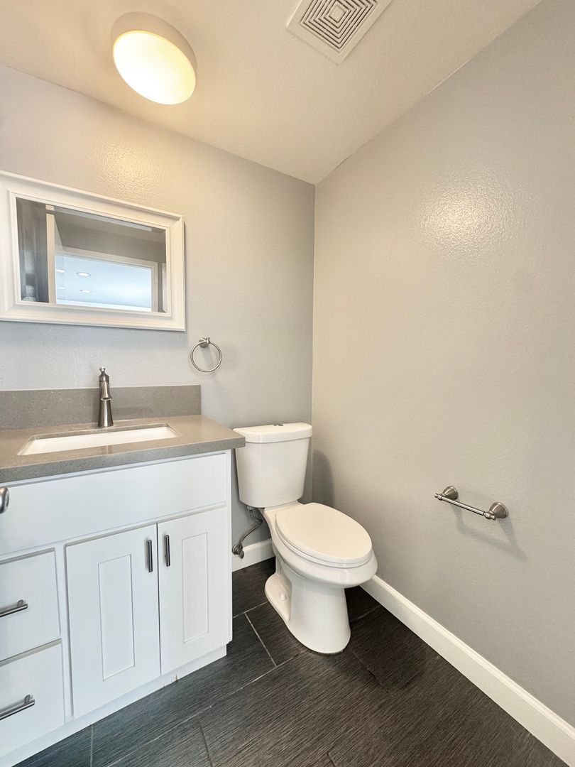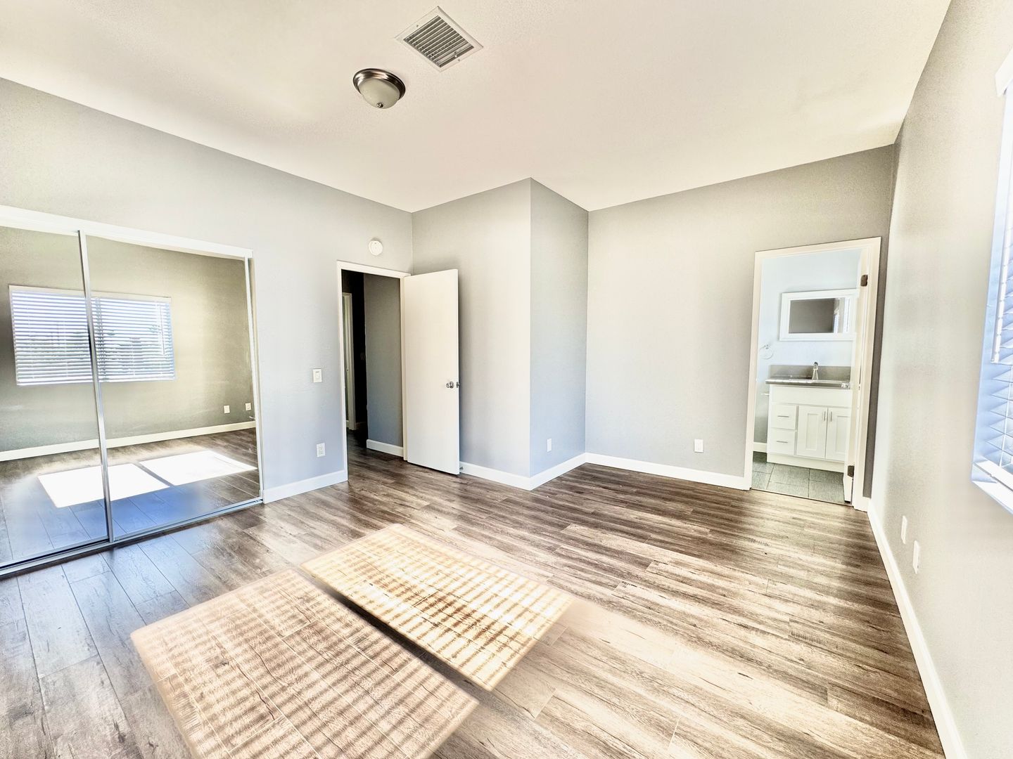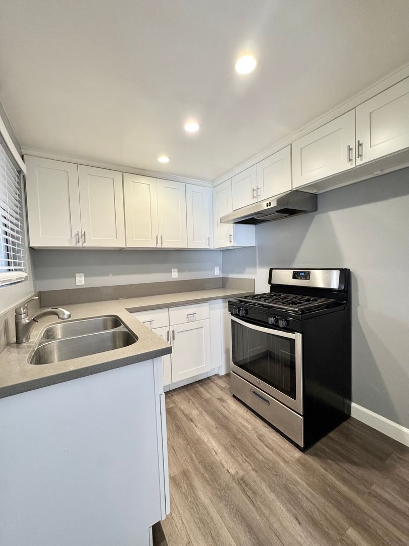 This spacious 3-bedroom townhome has been completely remodeled and updated from top to bottom! It enjoys new wood laminate flooring and paint, a modern kitchen featuring brand new stainless steel appliances (such as oven range & hood), entirely new quartz countertops and cabinets, plus 2 1/2 baths complete with brand new vanities, bathtubs & showers. It also boasts central A/C and heat, a private patio, and 2 parking spots (1 covered garage and 1 carport).