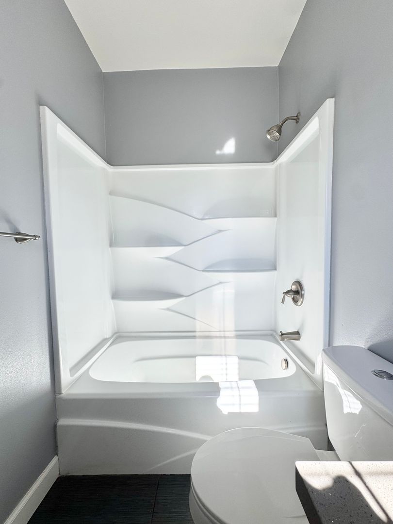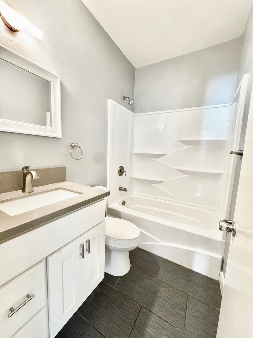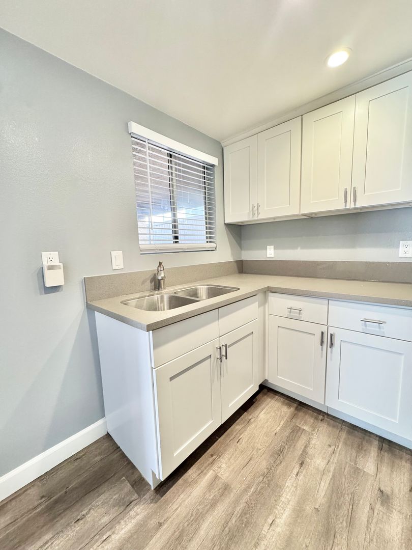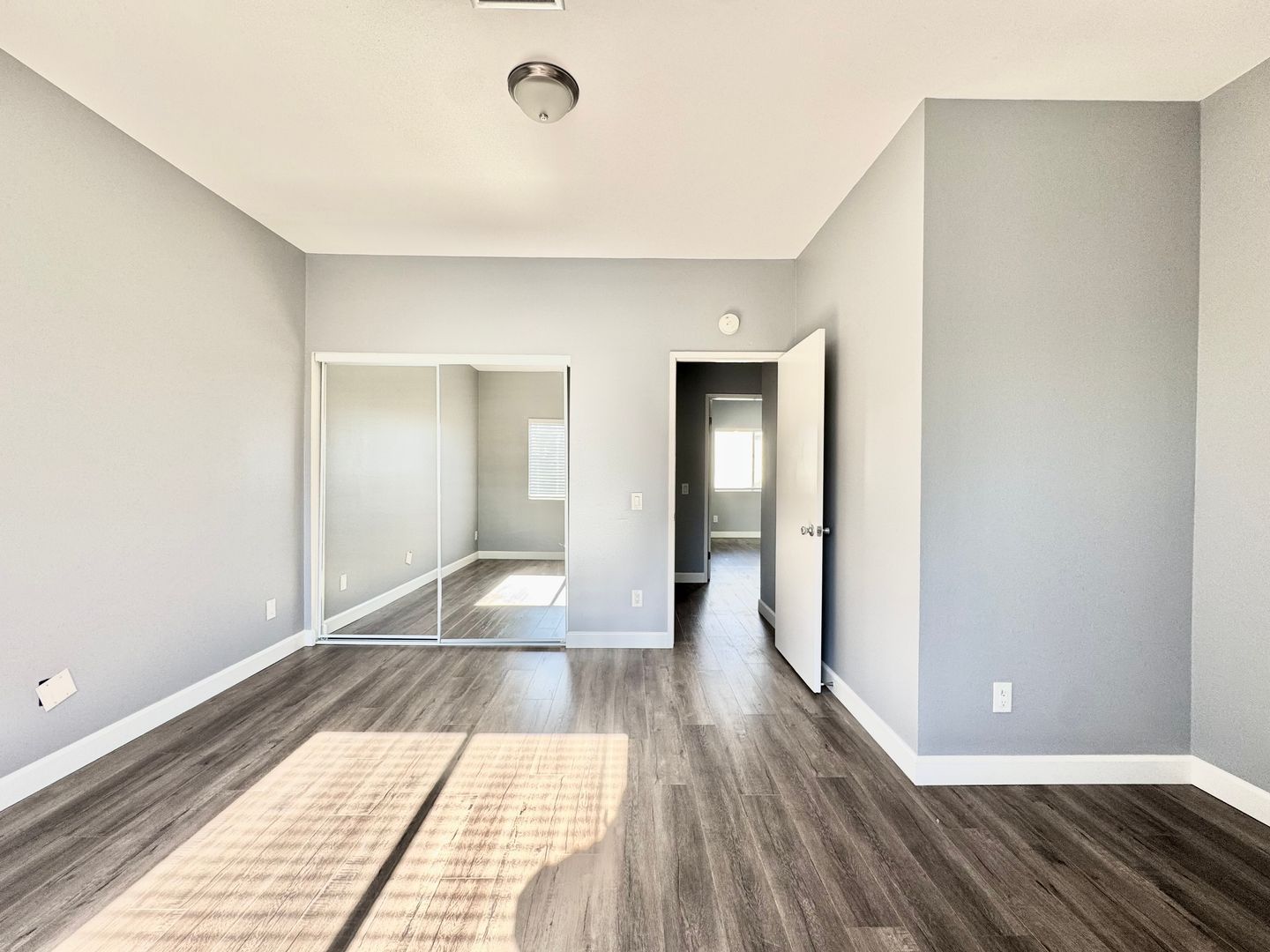 This spacious 3-bedroom townhome has been completely remodeled and updated from top to bottom! It enjoys new wood laminate flooring and paint, a modern kitchen featuring brand new stainless steel appliances (such as oven range & hood), entirely new quartz countertops and cabinets, plus 2 1/2 baths complete with brand new vanities, bathtubs & showers. It also boasts central A/C and heat, a private patio, and 2 parking spots (1 covered garage and 1 carport).