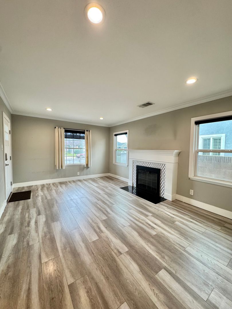 Beautifully remodeled 3-bedroom, 3-bathroom single-family home offering approximately 1,445 sq ft of comfortable living space. This inviting property features a large front porch, vinyl plank flooring throughout most of the home, and large windows that fill the space with natural light. The living room includes a cozy fireplace, perfect for relaxing evenings.