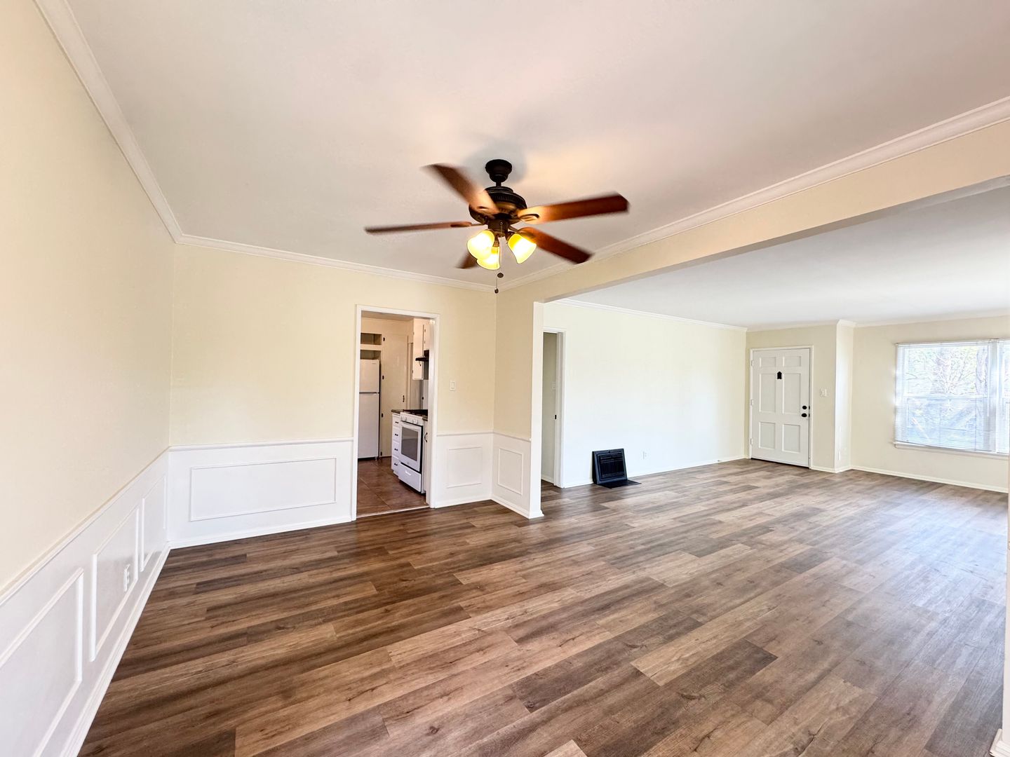 Step inside and be greeted by an abundance of natural light flowing through the large windows. The open floor plan seamlessly connects the living room and kitchen, creating a warm and inviting atmosphere perfect for entertaining friends or enjoying a quiet evening in.
